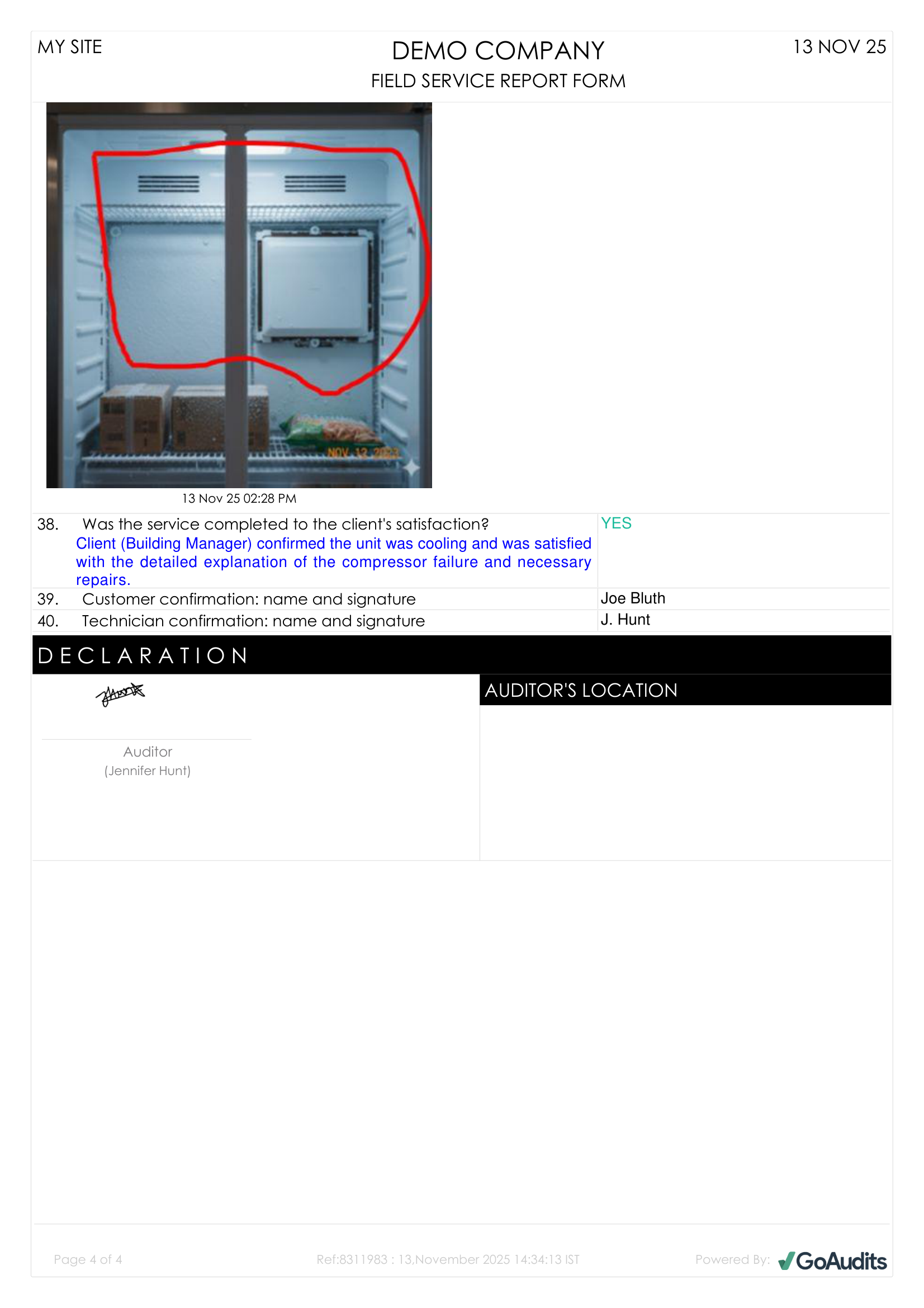 | Serial | Date | Inspector | Condition | Findings | Action | Status |